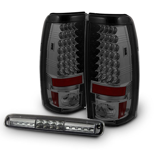 AKKON - For 1999-2002 Chevy Silverado | 1999-2006 GMC Sierra Smoked LED Tail Lights + Smoked LED 3Rd Brake Lamp