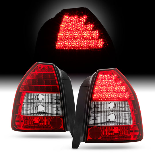 AKKON - For 1996-2000 Honda Civic Ek9 3-Door Hatchback JDM Red Clear LED Tail Brake Lights Lamps Set