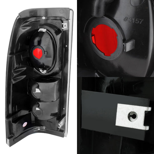 Regular price $58.99This is a 100% brand new pair of Tail lights Replacement Assemblies in Midnight Black Housing With Crystal Clear Lens Compatible With: 1982-1994 GMC Jimmy 1991-1993 GMC Sonoma 1991-1994 Oldsmobil Bravada 1982-1993 Chevy S-10 Blazer Pick... -