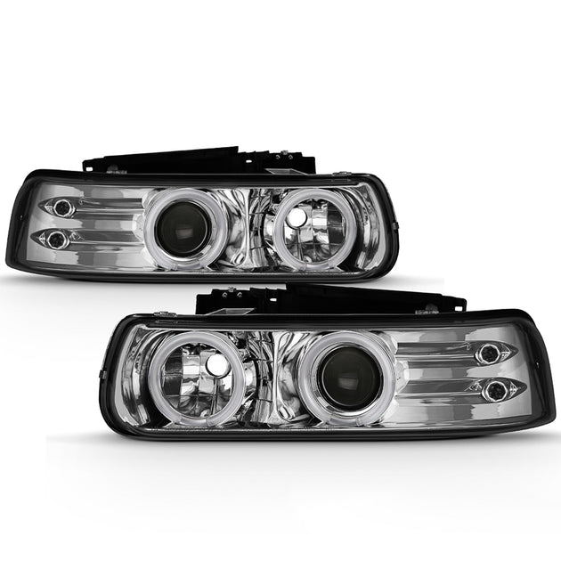 AKKON - Fits 1999-2002 Chevy Silverado 2000-2006 Suburban Tahoe CCFL Halo Projector LED Chrome Headlights Pair Housing