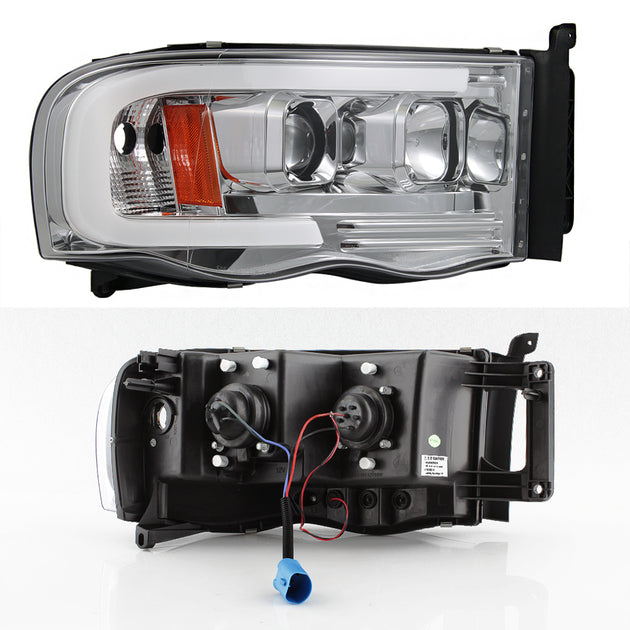 AKKON - Fits 2002-2005 Dodge Ram 1500 2500 3500 Pickup Truck C-Tube [Low-Beam LED] Projector headlights Pair Driver + Passenger