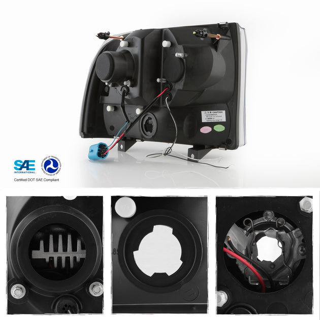 AKKON - Fits 2001-2011 Ford Ranger Black Headlights Headlamp Pair Driver & Passenger w/ LED Tube DRL