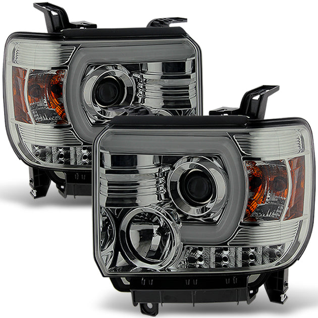 AKKON - For GMC Sierra 1500/2500/3500 Pickup Smoked Smoke DRL LED Light Tube Projector Headlights Replacement