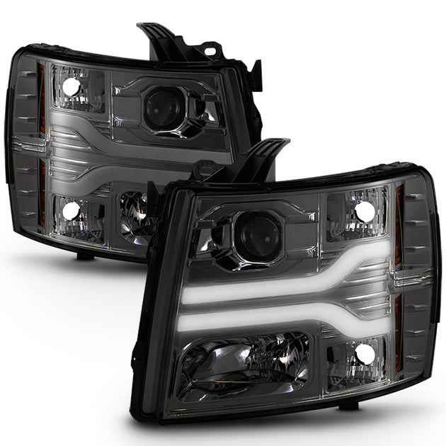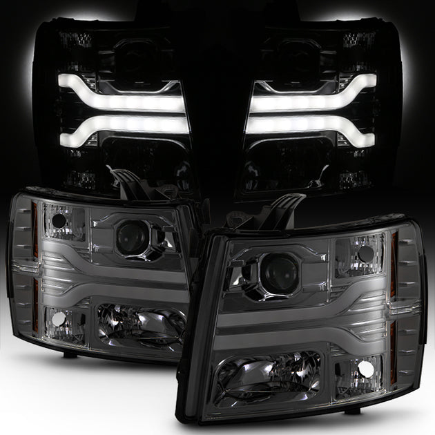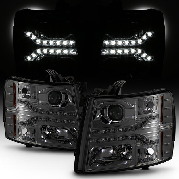 AKKON - For GMT900 Chevy Silverado Pickup Truck Dual LED Tube DRL Smoked Lens Projector Headlights Pairs Lamps