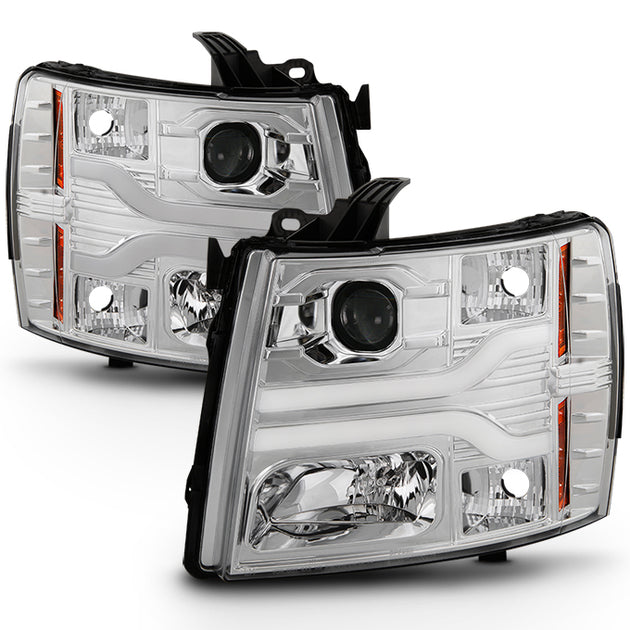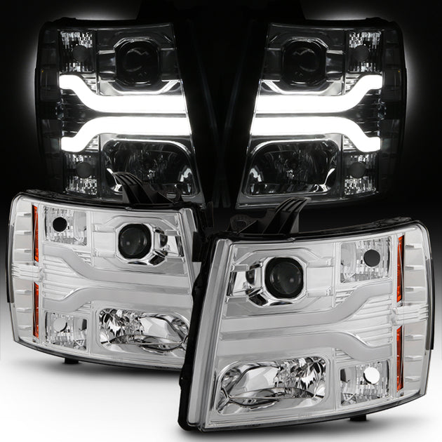 AKKON - For GMT900 Chevy Silverado Pickup Truck Dual LED Tube DRL Chrome Clear Projector Headlights Pairs Lamps