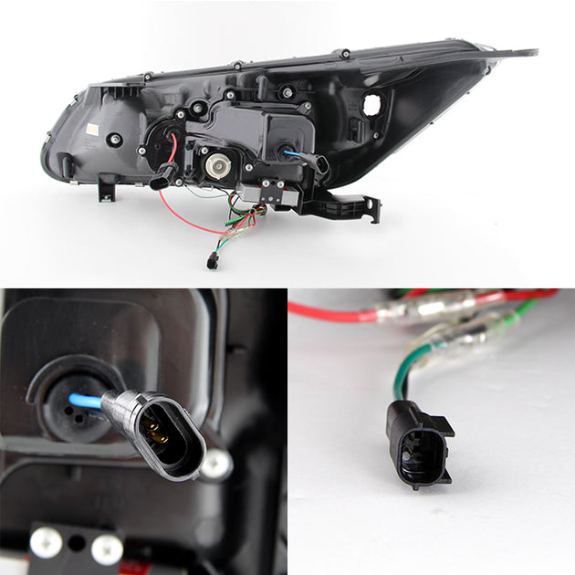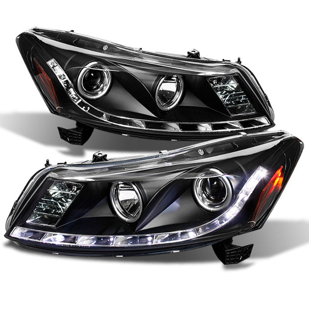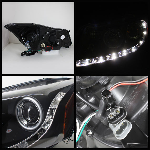AKKON - For Honda Accord Black Bezel DRL Daylight LED Strip Projector Headlights Front Lamps Replacement Pair
