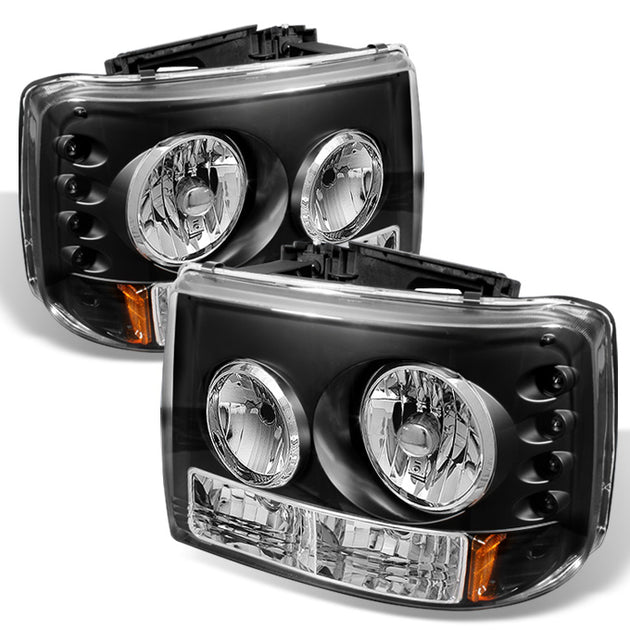 AKKON - For GMT800 Chevy Silverado | Tahoe | GMC Suburban Pickup Truck 1PC Black Bezel Headlights Assembly