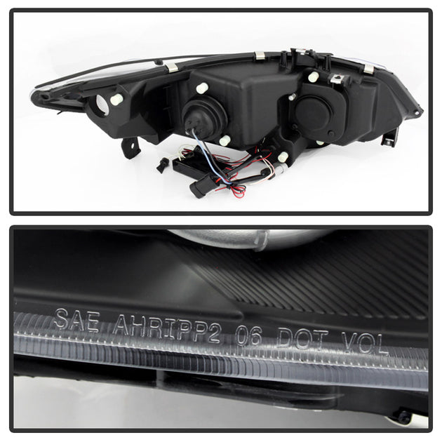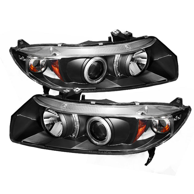 AKKON - For Honda Civic Black Bezel Dual Halo Ring Projector Headlights Head Lamps Replacement Left/Right Pair
