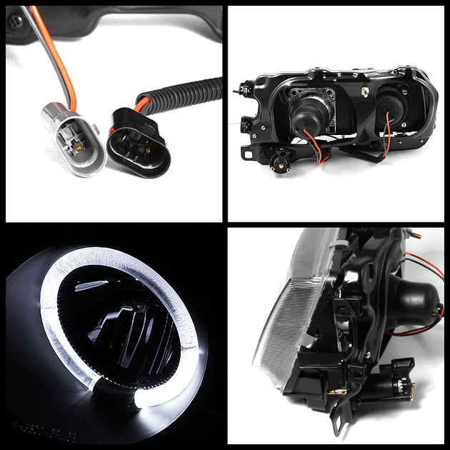 AKKON - For Honda Civic 2 Doors Coupe Black Bezel Dual CCFL Halo Projector Headlights Driver Passenger Lamps