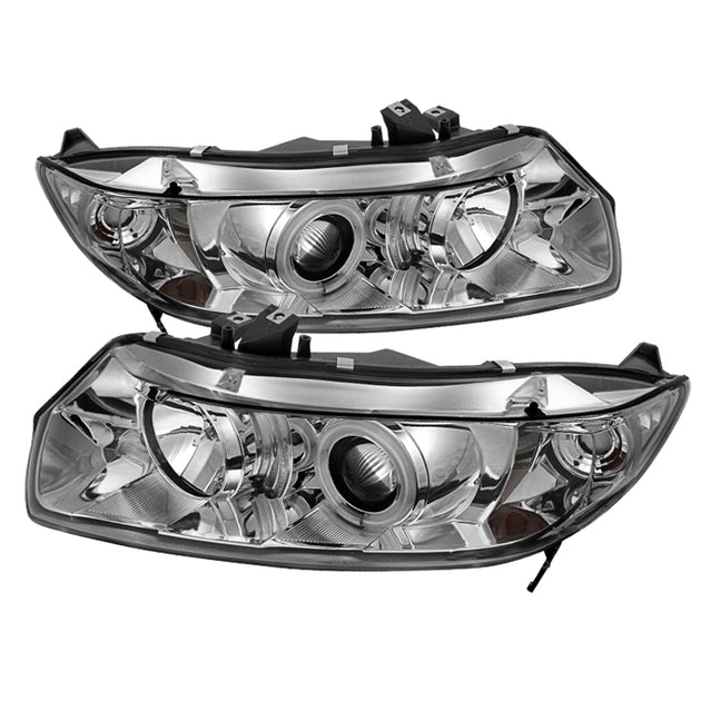 AKKON - For Honda Civic 2 Doors Coupe Chrome Clear Dual Halo Ring Projector Headlights Driver Passenger Lamps