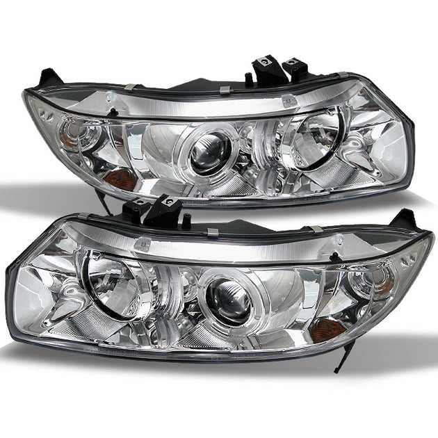 AKKON - For Honda Civic 2 Doors Coupe Chrome Clear Dual CCFL Halo Projector Headlights Driver Passenger Lamps