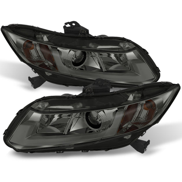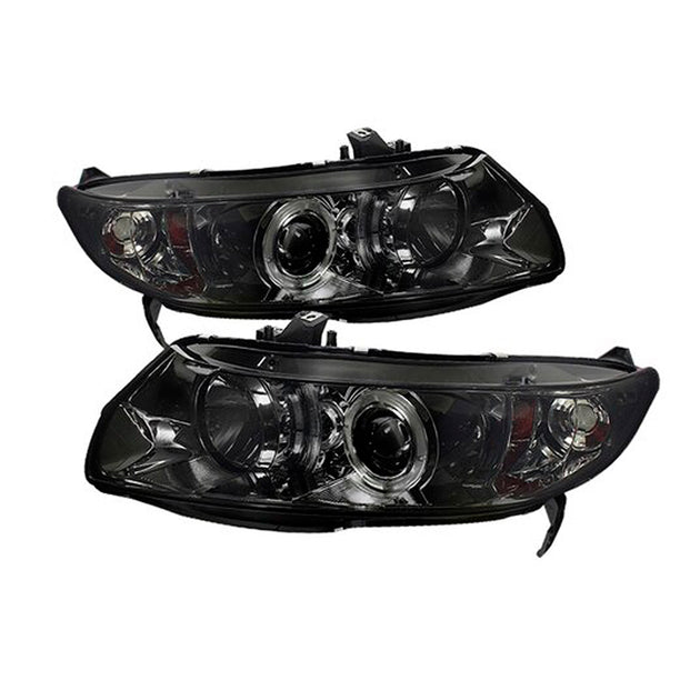 AKKON - For Honda Civic Smoekd Smoke Dual Halo Ring Projector Headlights Head Lamps Replacement Left/Right Pair