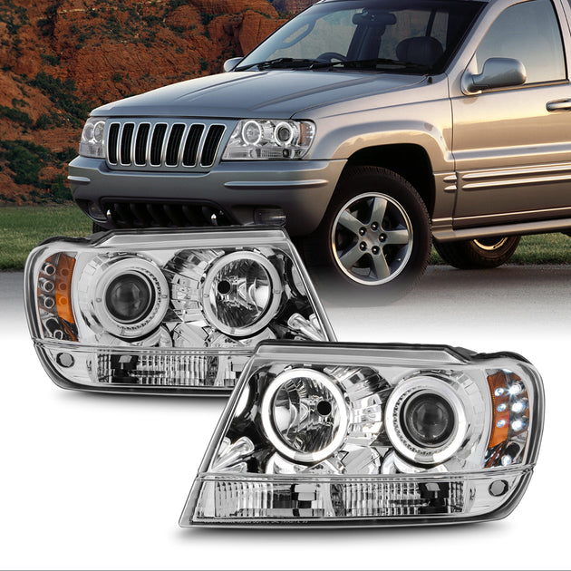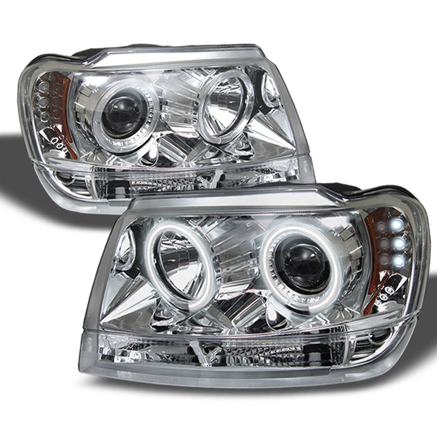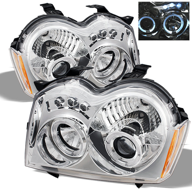 AKKON - For Jeep Grand Cherokee Chrome Clear CCFL Halo Ring Projector LED Replacement Headlights LH/RH Head Lamp