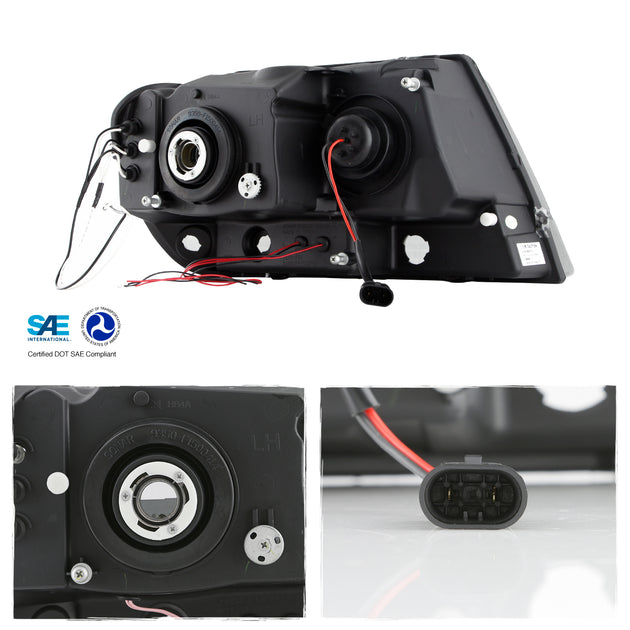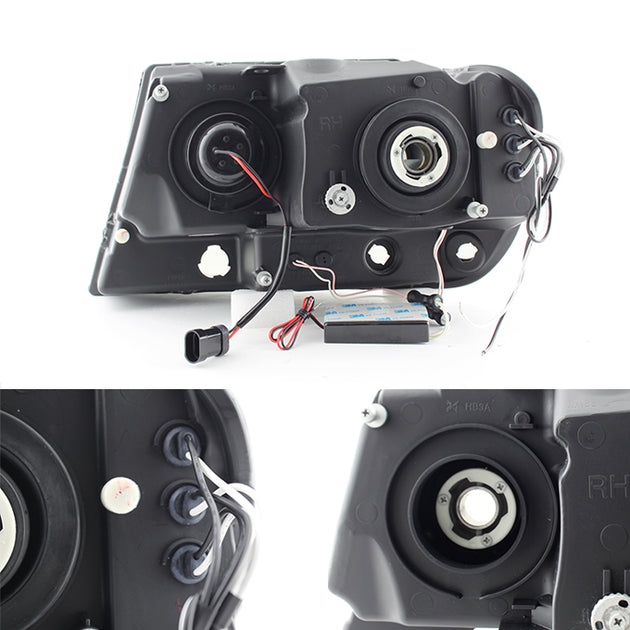 AKKON - For Jeep Grand Cherokee Black Bezel Dual Halo Ring Projector LED Replacement Headlights LH/RH Head Lamps