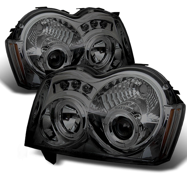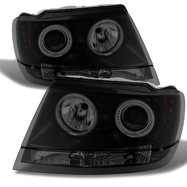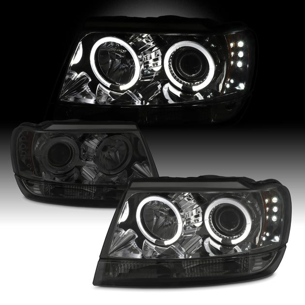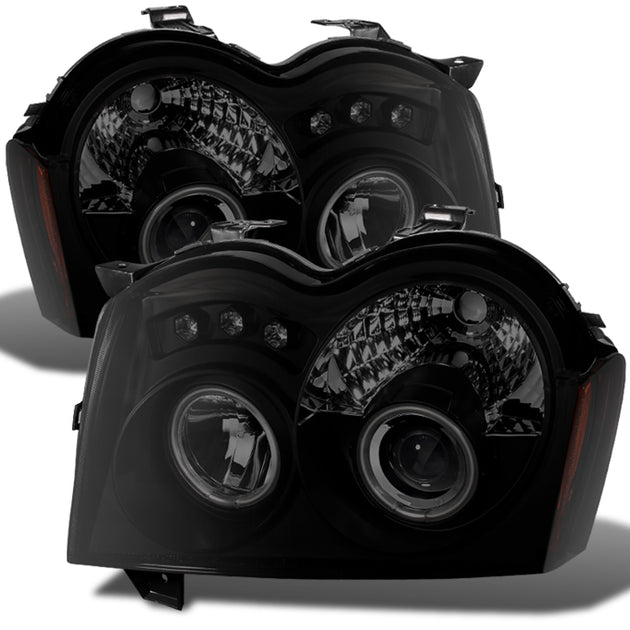 AKKON - For Jeep Grand Cherokee Smoked Smoke Dual Halo Ring Projector LED Replacement Headlights LH/RH Head Lamp