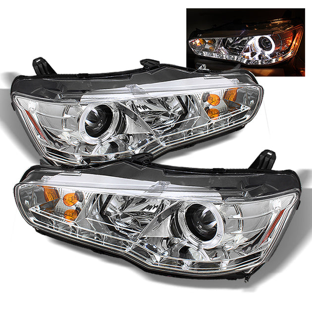 AKKON - For Mitsubishi Lancer Evolution CZ4A EVO X Chrome Halo DRL LED Halogen Type Projector Headlights