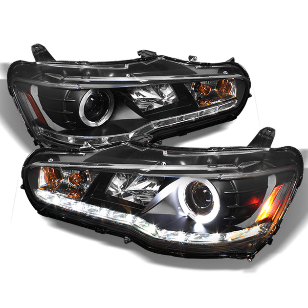 AKKON - For Mitsubishi Lancer Evolution CZ4A EVO X Black Bezel Halo DRL LED Xenon HID Type Projector Headlights
