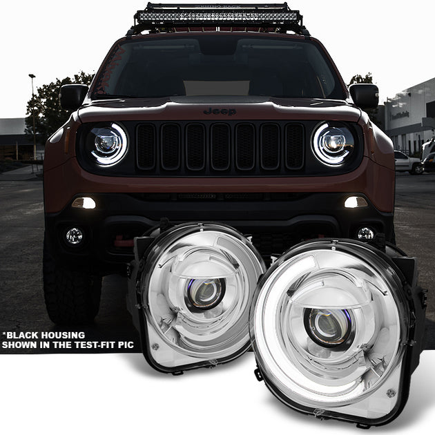 AKKON - For NEW Design 2015 2016 2017 2018 Jeep Renegade C-Shape LED Tube Projector Headlights + 6000K HID Kit