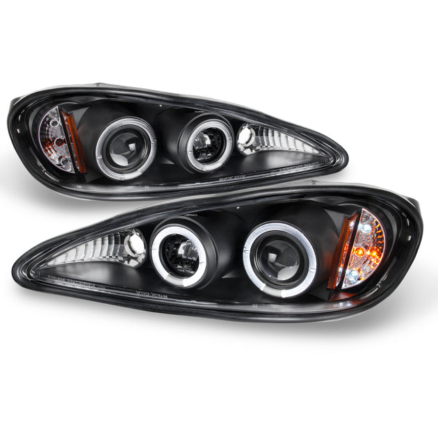AKKON - For Pontiac Grand AM Black Bezel Dual Halo Ring Projector Replacement Headlights Front Lamps Left/Right