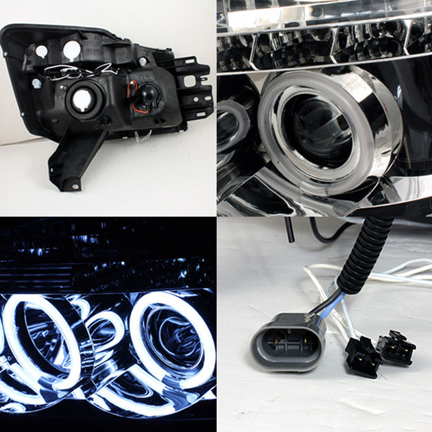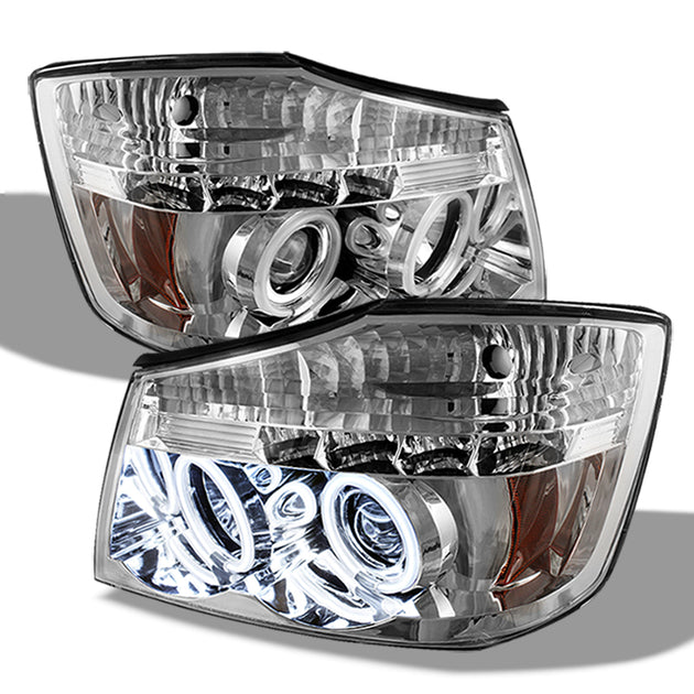 AKKON - For Nissan Titan Armanda Chrome Clear CCFL Halo Projector LED Headlights Front Lamps Replacement Pair
