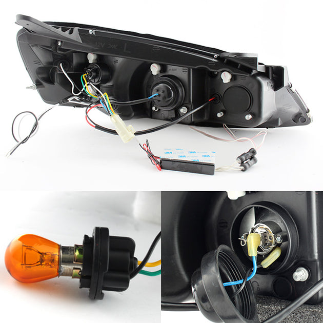 AKKON - For Pontiac G8 Black Bezel DRL Daylight LED Projector Replacement Headlights Front Lamps Left/Right Pair