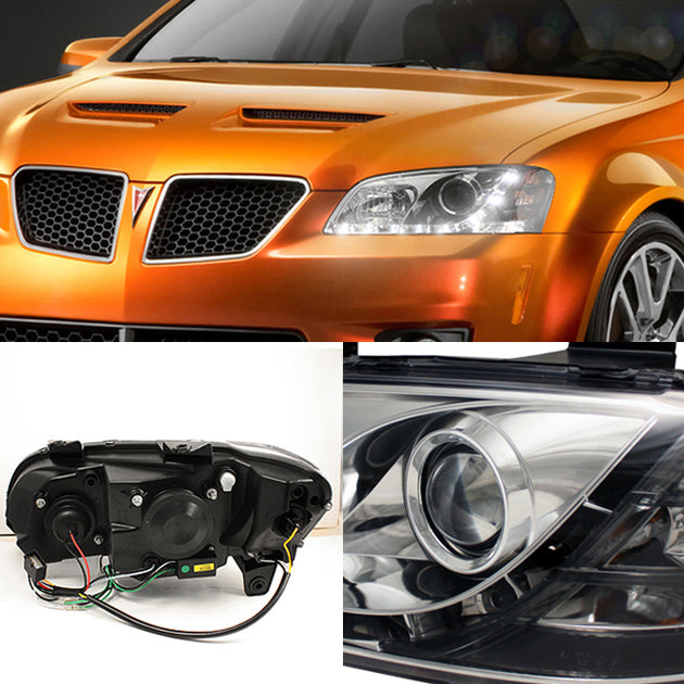 AKKON - For Pontiac G8 Chrome Clear DRL Daylight LED Projector Replacement Headlights Front Lamps Left/Right Set