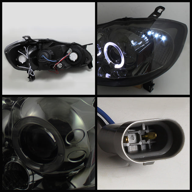 AKKON - For Toyota Corolla Smoked Smoke Dual Halo Ring DRL Daylight LED Projector Headlights Replacement Pair