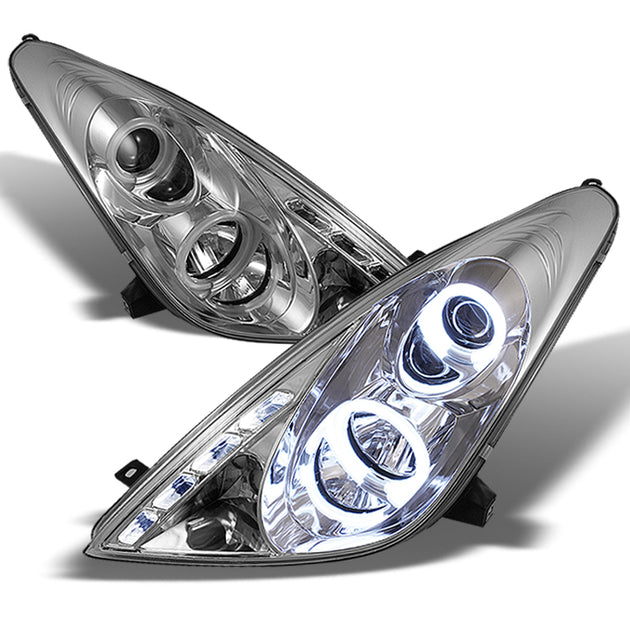 AKKON - For Toyota Celica Chrome Clear Dual Halo Projector DRL LED Headlights Driver/Passenger Replacement Lamps