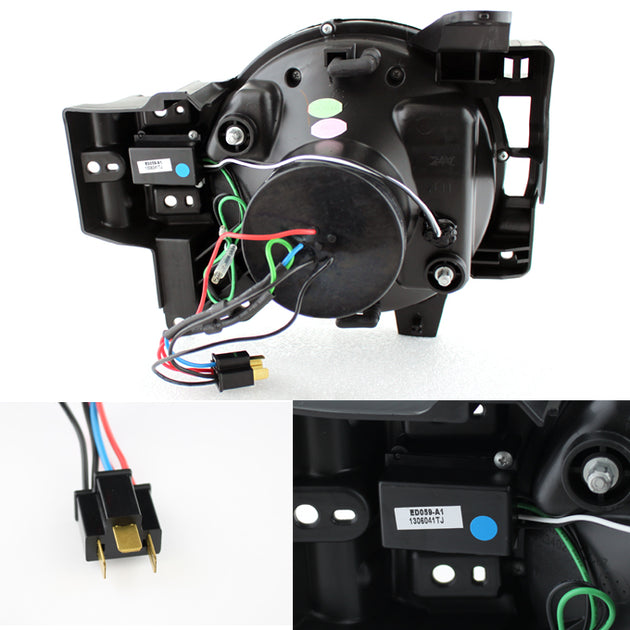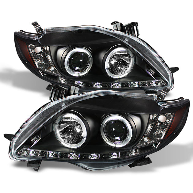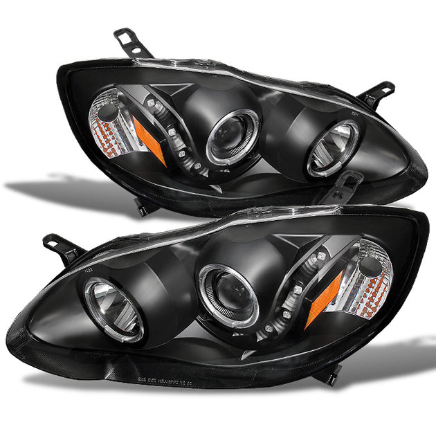 AKKON - For Toyota Corolla Black Bezel Dual Halo Ring DRL Daylight LED Projector Headlights Replacement Pair
