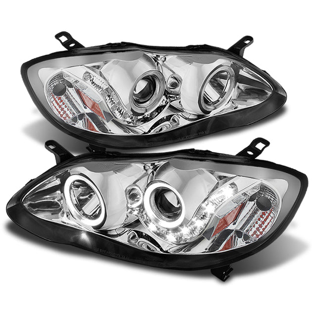 AKKON - For Toyota Corolla Chrome Clear Dual Halo Ring DRL Daylight LED Projector Headlights Replacement Pair