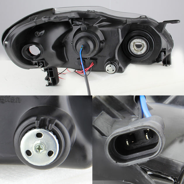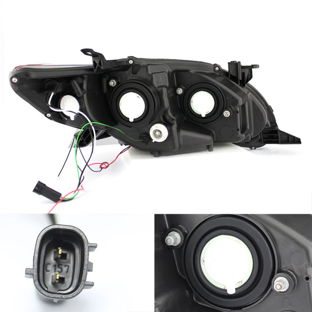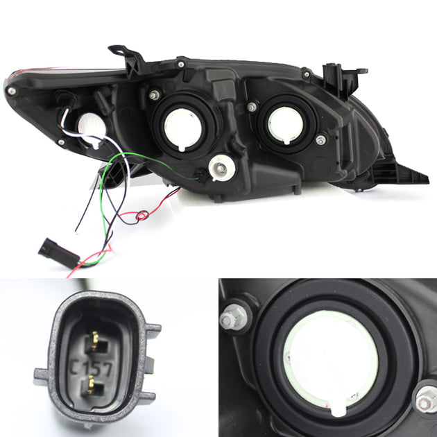 AKKON - For Toyota Corolla Black Bezel Dual Halo Ring DRL LED Strip Projector Headlights Front Lamps Pair Set