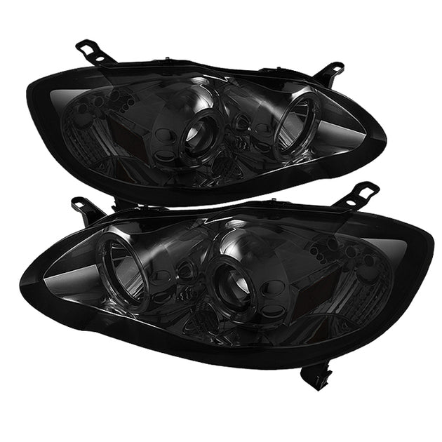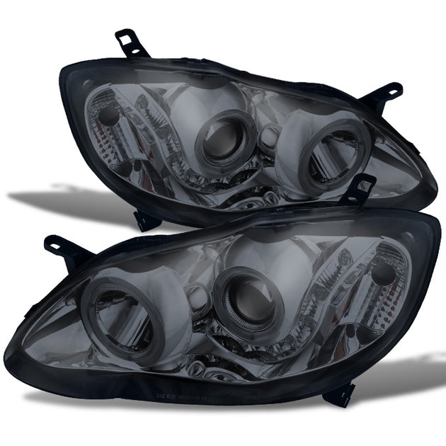 AKKON - For Toyota Corolla Smoked Smoke Dual Halo Ring Projector Headlights Front Lamps Replacement Left + Right