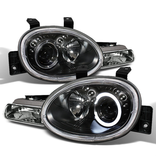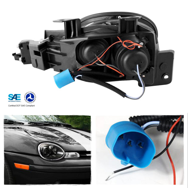 AKKON - [Upgraded Style]Fits 1995-1999 Dodge Neon & Plymouth Neon Halo Rim DRL LED Projector Pair Headlights [Black Bezel]