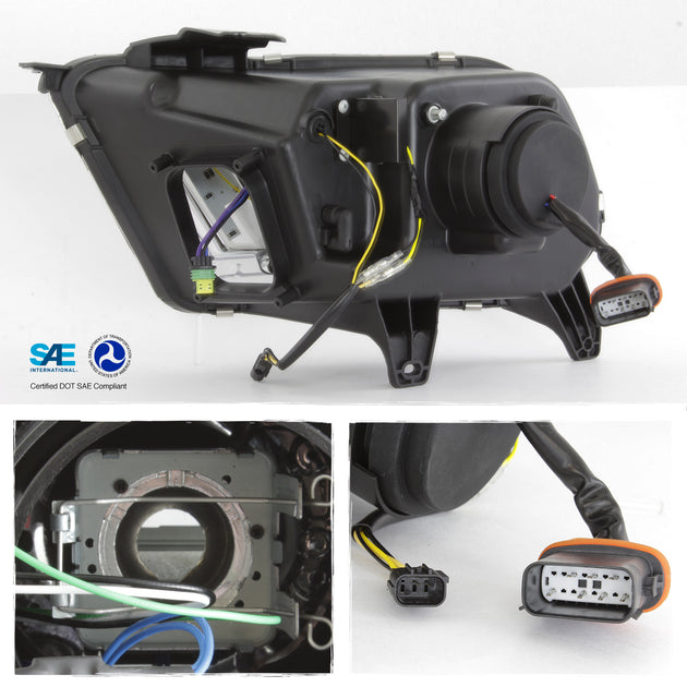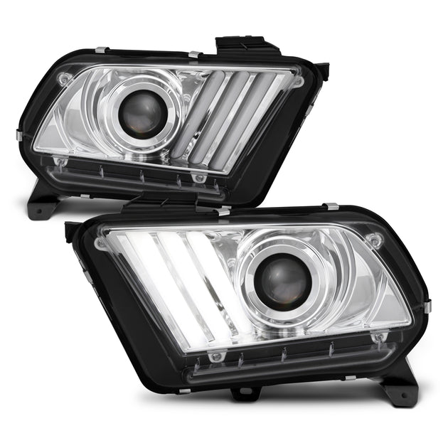 AKKON - [Sequential Tube] For 2013-2014 Ford Mustang LED Signal [HID/Xenon] Projector Chrome Headlights Driver+Passenger Pair
