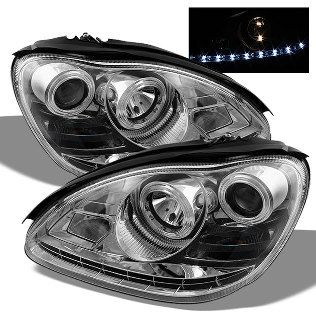 AKKON - [Xenon HID Type] For 2003-2006 Mercedes Benz W220 S-Class Sedan Chrome DRL Daylight LED Projector Headlights