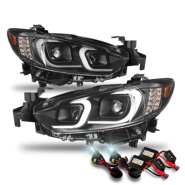 AKKON - [Xenon Upgrade]For 2014-2017 Mazda 6 LED Light Tube DRL Projector Black Housing Headlights w/ 6000K HID