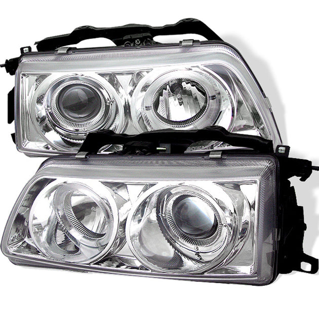 Fits 90-95 Vw Corrado Chrome Clear Dual Halo Projector Headlights Lamp Pair Set