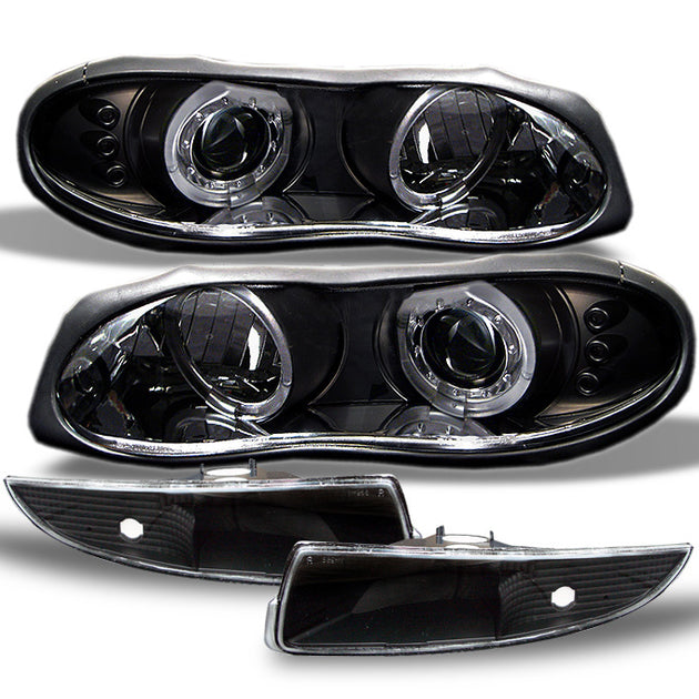 Fits 98-02 Camaro Black Halo Projector LED Headlights+Black Bumper Signal Lamps