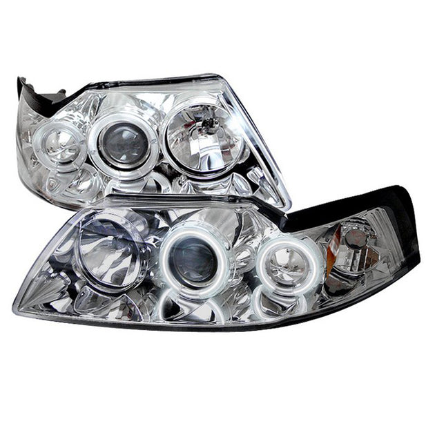Fits 99-04 Mustang 1Pc Chrome CCFL Halo Projector LED Headlights W/Corner Signal