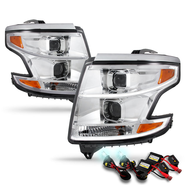 For 2015-2020 Suburban Tahoe LED DRL Tube Chrome Projector Headlights+6000K HID