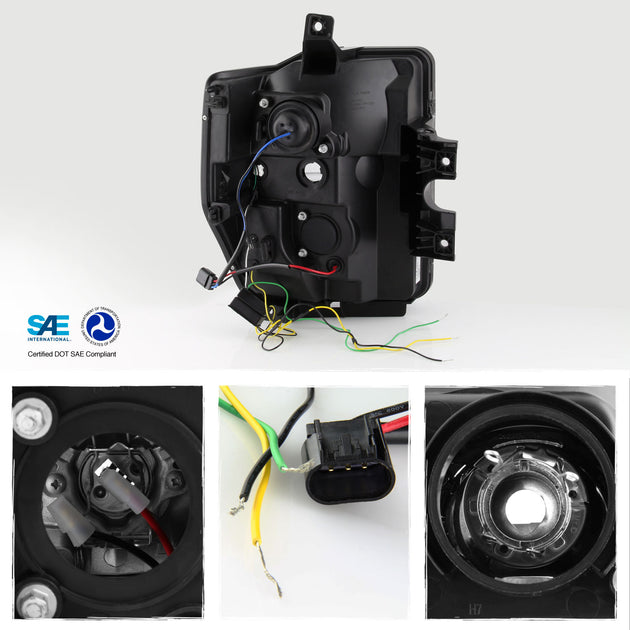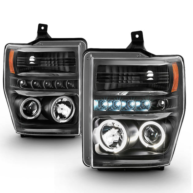 AKKON - Fits 2008-2010 Ford F250/F350/F450/F550 Super Duty LED Parking SwitchBack Tube Signal Projector Black Headlights Pair