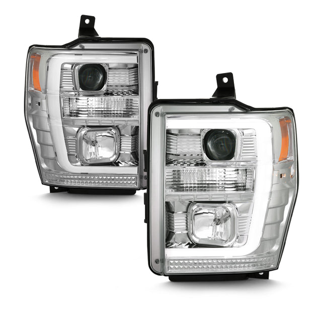 AKKON - Fits 2008-2010 Ford F250/F350/F450/F550 Super Duty LED Parking SwitchBack Tube Signal Projector Chrome Headlights Pair