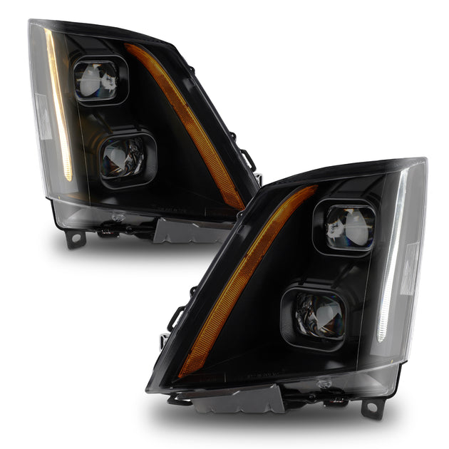AKKON - Fits 2008-2014 Cadillac CTS Dual Projector Black Smoke Housing Headlights [Switchback LED]