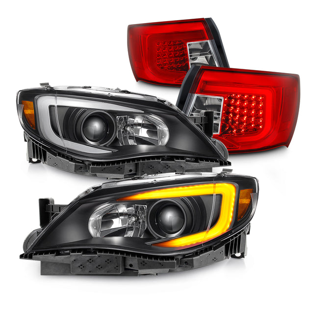 AKKON - Fits 2008-2011 Subaru Impreza| 12-14 WRX Premium LED Taillights Bar Housing & Projector Headlights