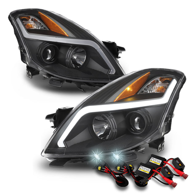 AKKON - Fits 2008-09 Nissan Altima Coupe Model LED Light Bar DRL Black Housing Projector Headlights + 6000K HID Kit