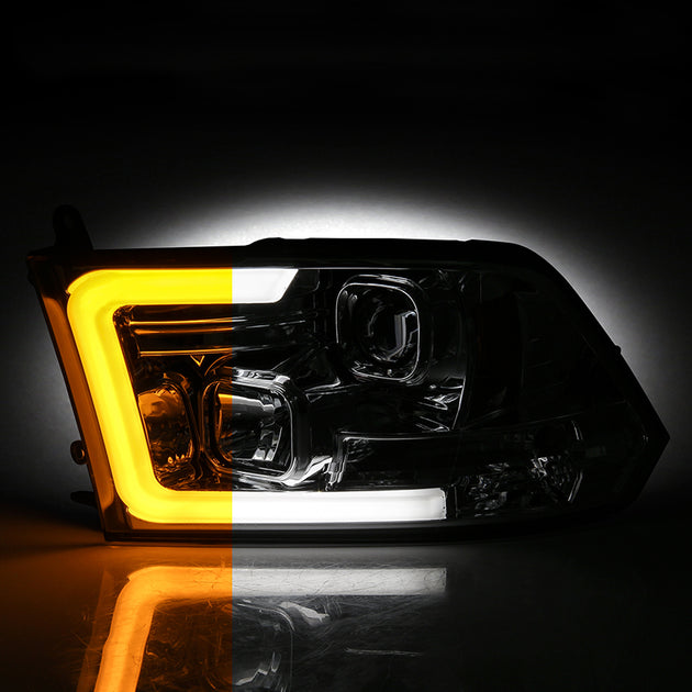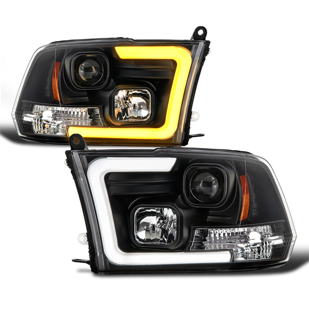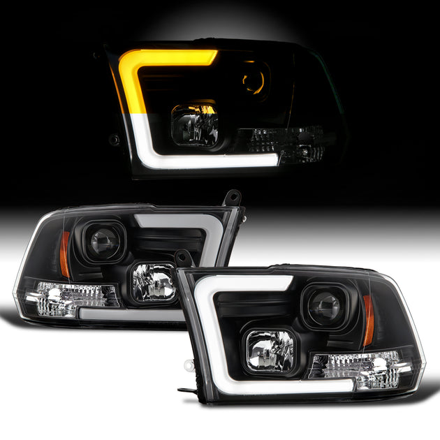 AKKON - Fits 2009-2010-18 Dodge Ram 1500 2500 3500 Black Projector Headlights w/ [LED Tube] Yellow Turn Signal Pair