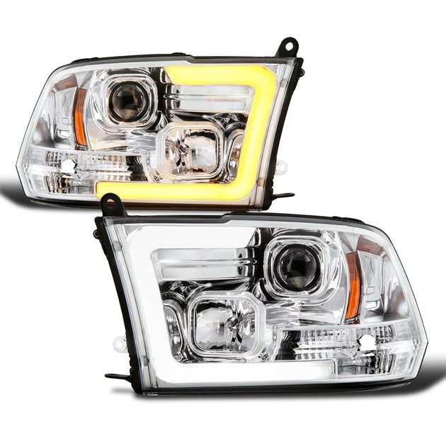 AKKON - Fits 2009-2010-2018 Dodge Ram 1500 2500 3500 Projector Chrome Headlights w/ [LED Tube] Yellow Turn Signal Pair