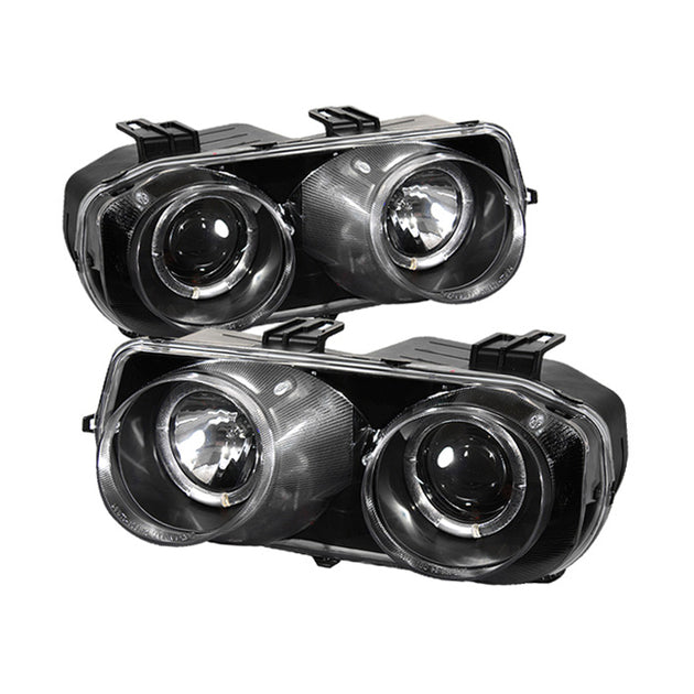 AKKON - For Acura Integra DC1 Black Bezel Dual Halo Ring Projector Headlights Front Lamps Replacement Pair