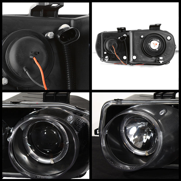 AKKON - For Acura Integra DC2 Black Bezel Dual Halo Ring Projector Headlights Front Lamps Replacement Pair