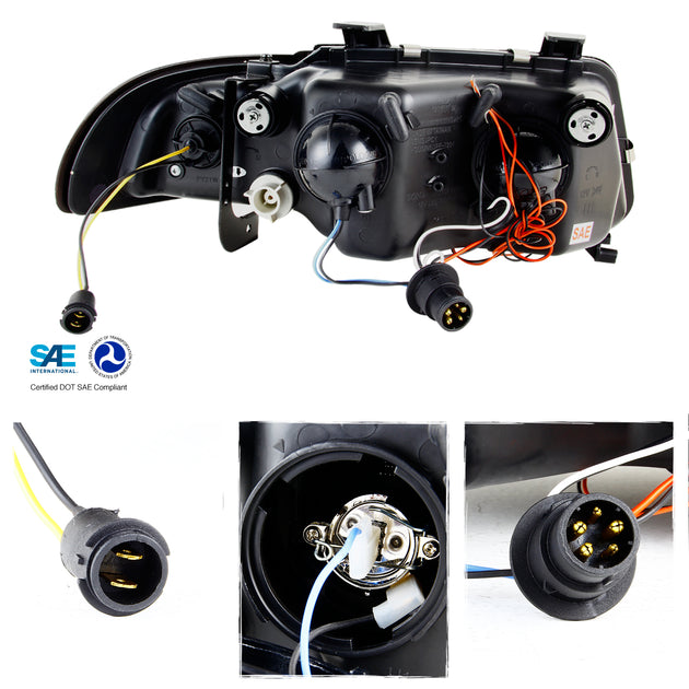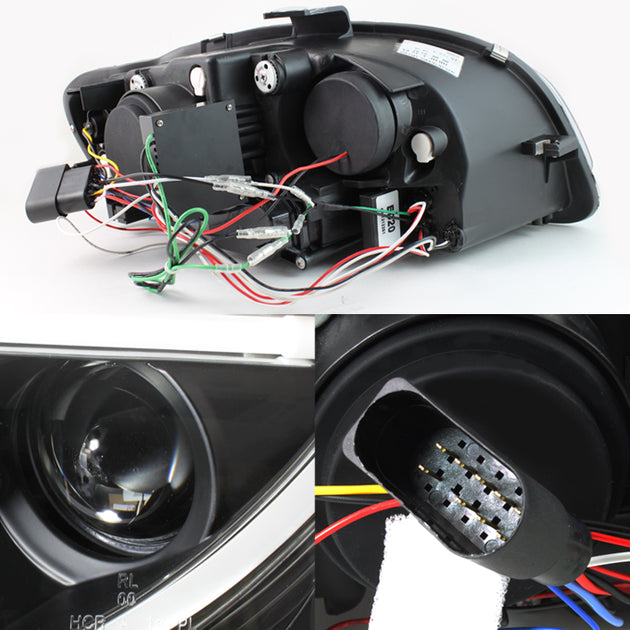 AKKON - For Audi A6 C5 Sport Sedan Black Bezel DRL Daytime LED Strip Projector Headlights Lamps Left + Right